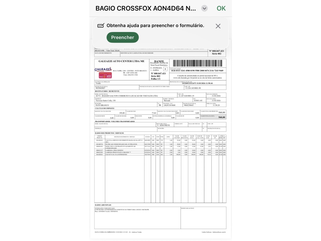 • Combustível